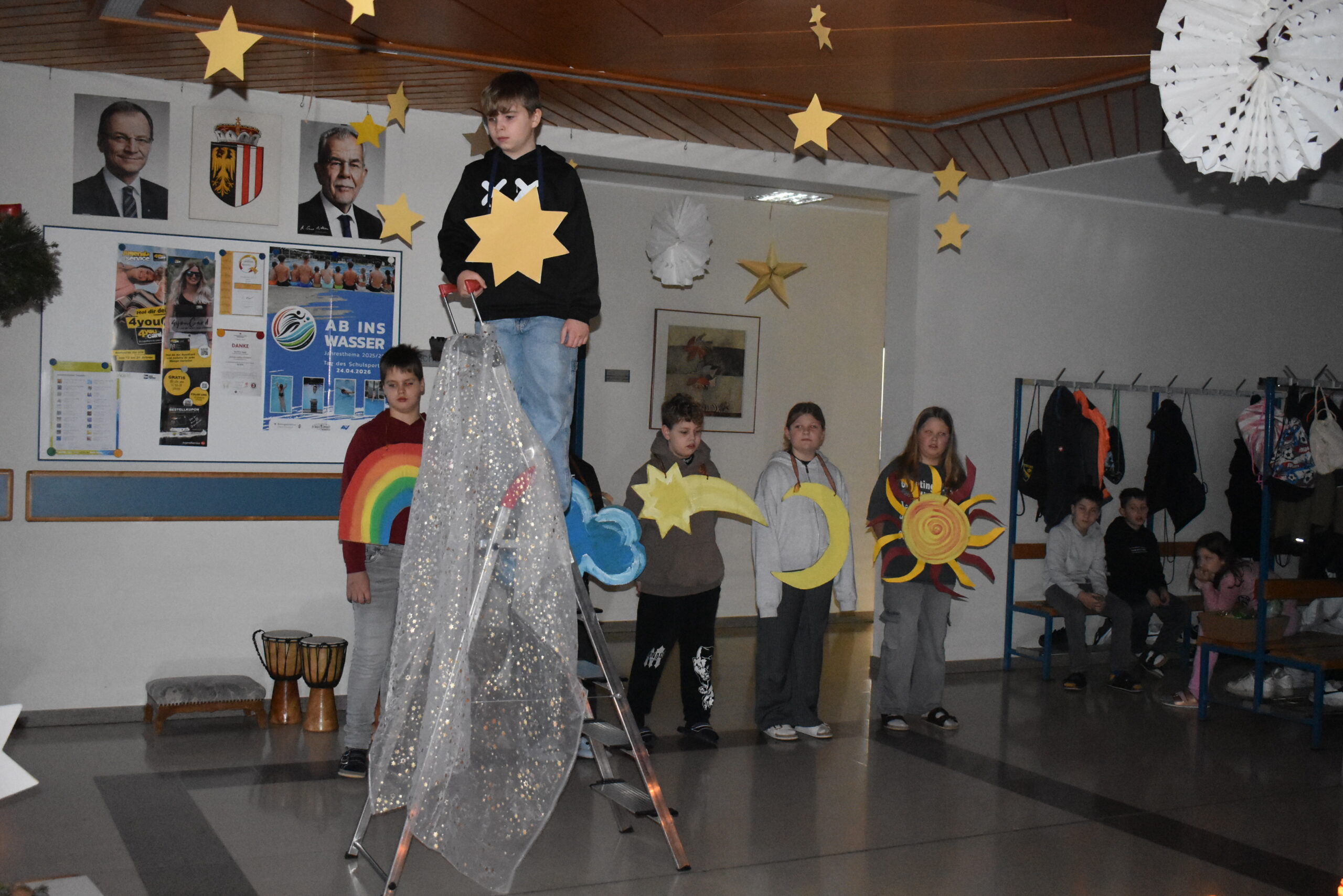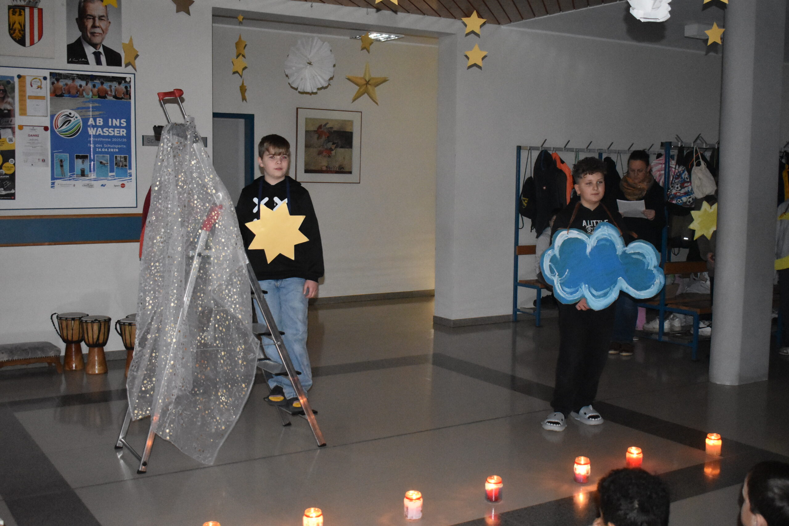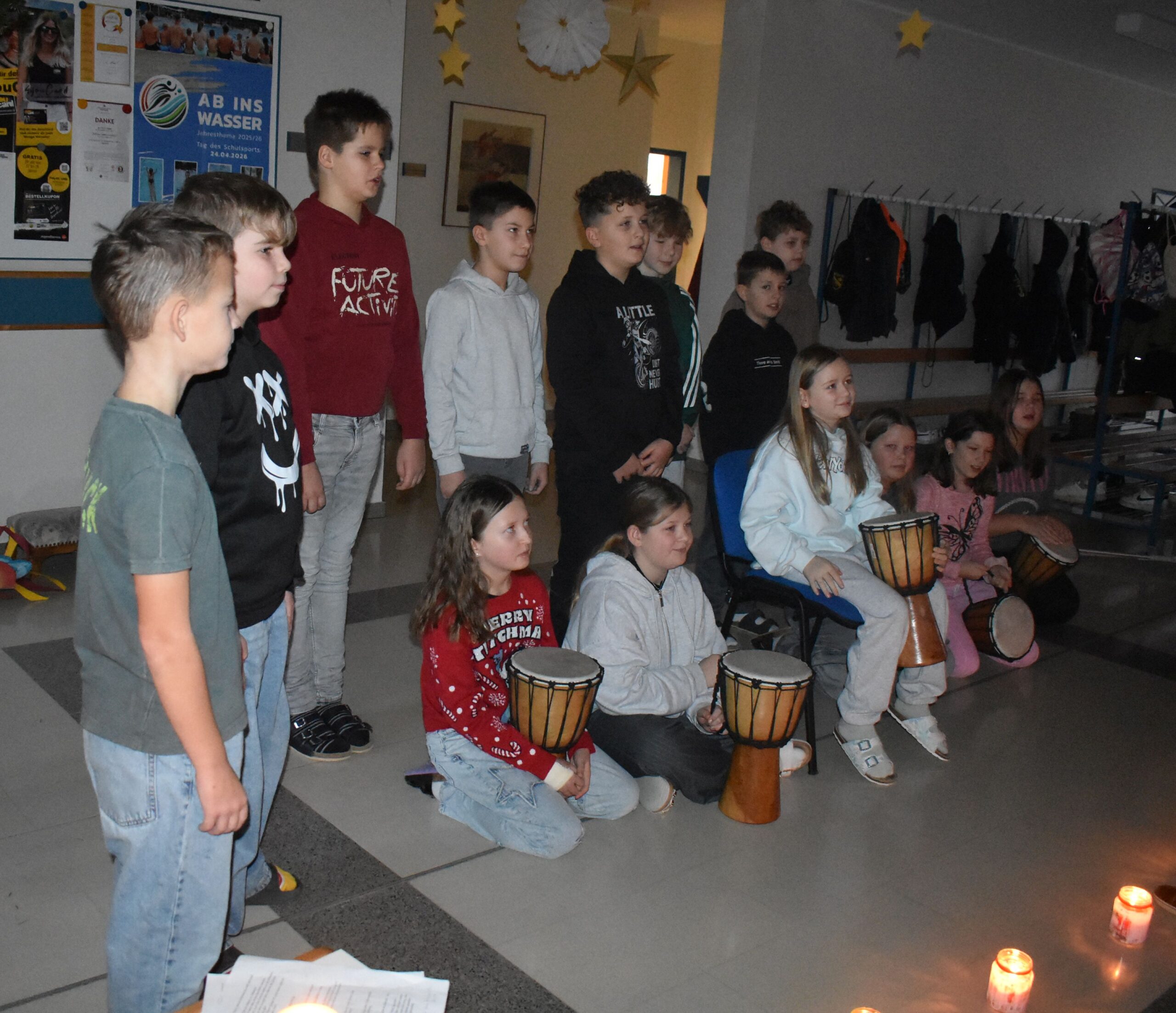 Adventfeier 1. Klasse Posted onDezember 17, 2025Dezember 17, 2025AuthorMichael Reisenberger Zu Beginn der dritten Adventwoche feierte die 1. Klasse eine stimmungsvolle Adventfeier.Dabei ging es u.a. um einen kleinen Stern, der nach einigen Begegnungen zu einem großen Stern wird und hell leuchtet.
