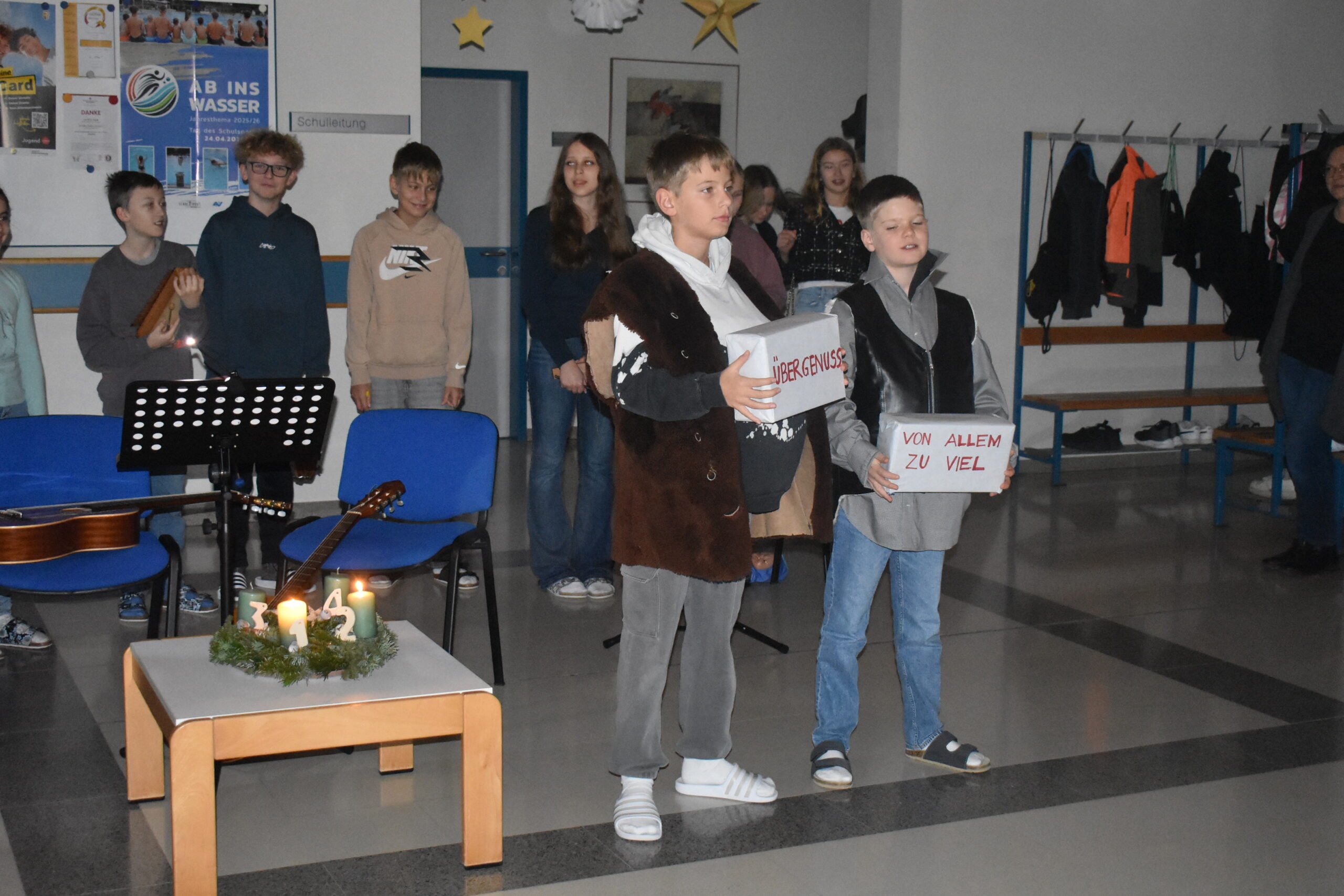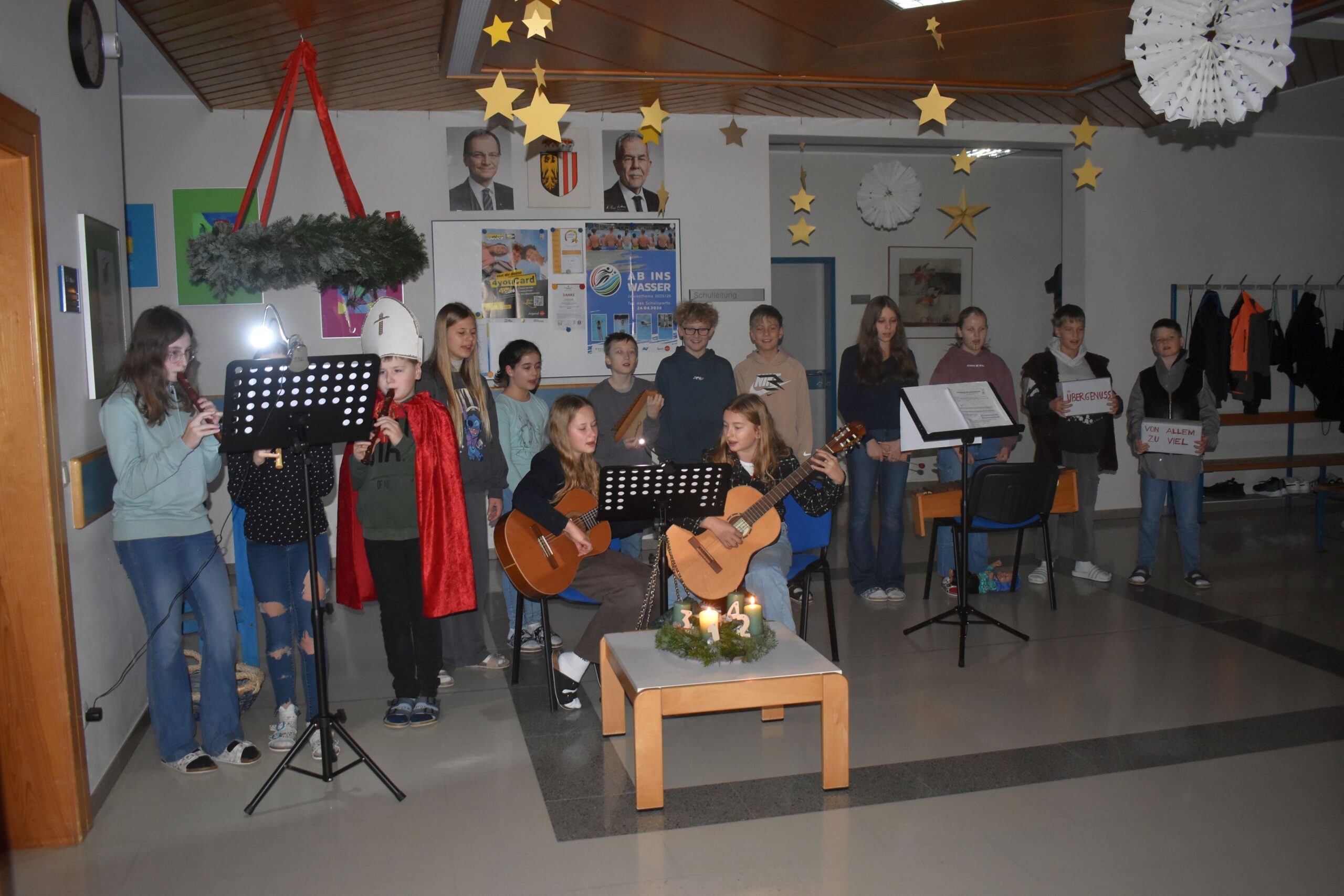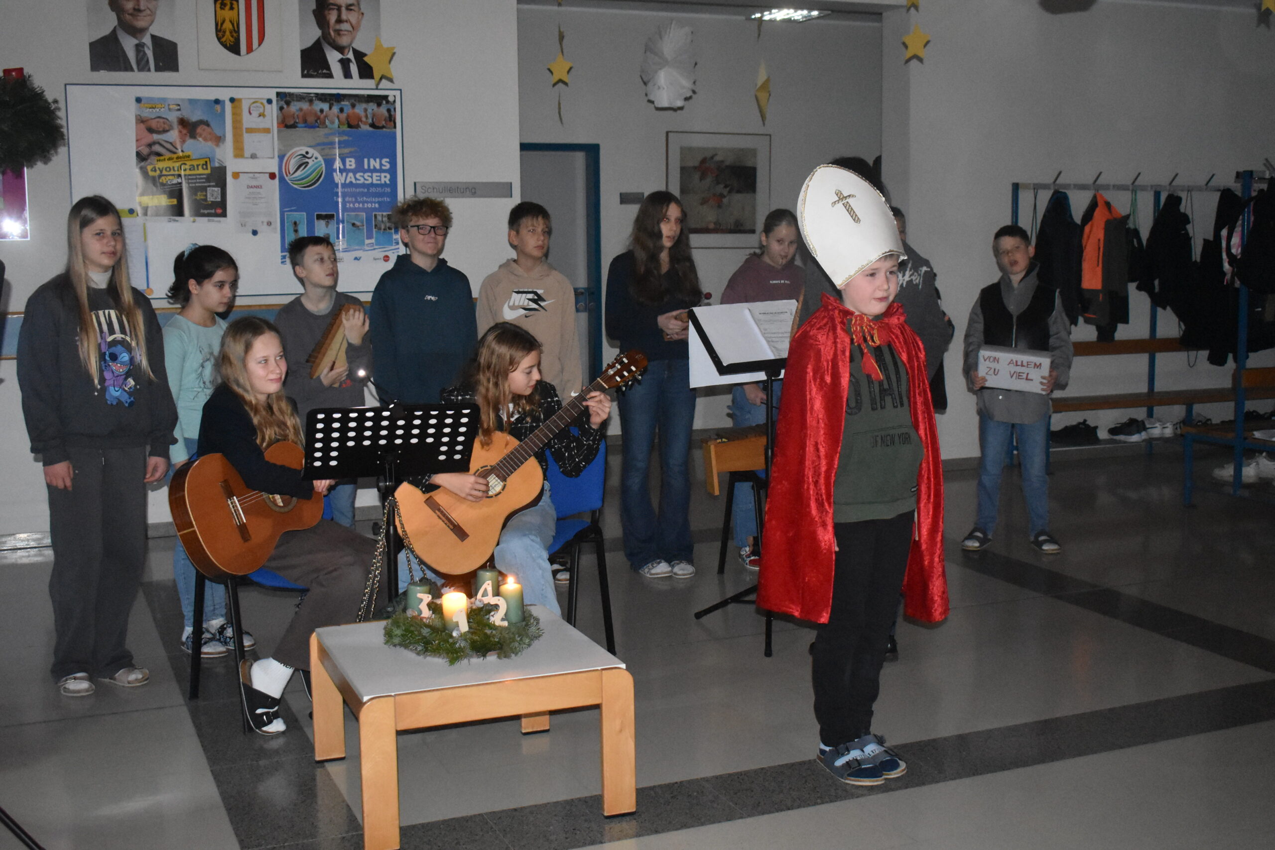 Der Heilige Nikolaus stand im Mittelpunkt der Adventfeier der 2. Klasse. Die Schülerinnen und Schüler der 2. Klasse führten das Singspiel „Der Mann mit Bart und Bischofsstab“ bereits am 2. Adventwochenende im Rahmen des „Aegidinger Advents“ auf. Das 2. Adventfenster wurde ebenfalls von der 2. Klasse gestaltet.