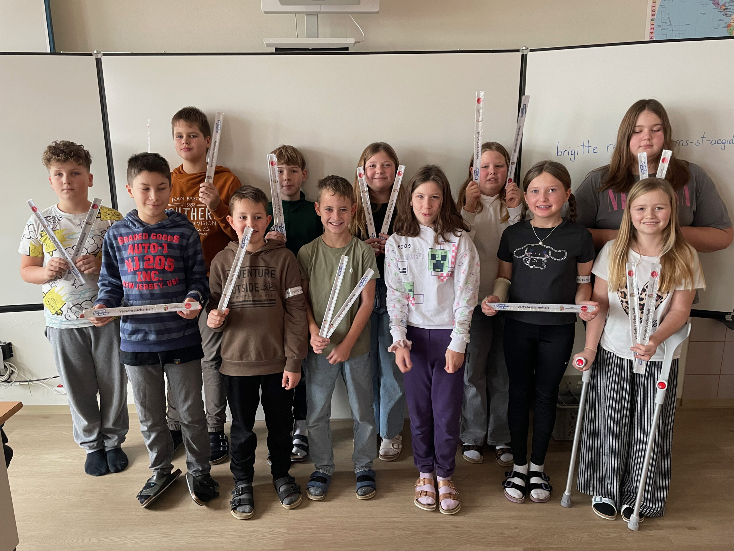 Im Rahmen der Aktion „Mach dich sichtbar“ bekamen die Schülerinnen und Schüler der 1. Klassen Reflektorbänder vom Land Oberösterreich gratis zur Verfügung gestellt.