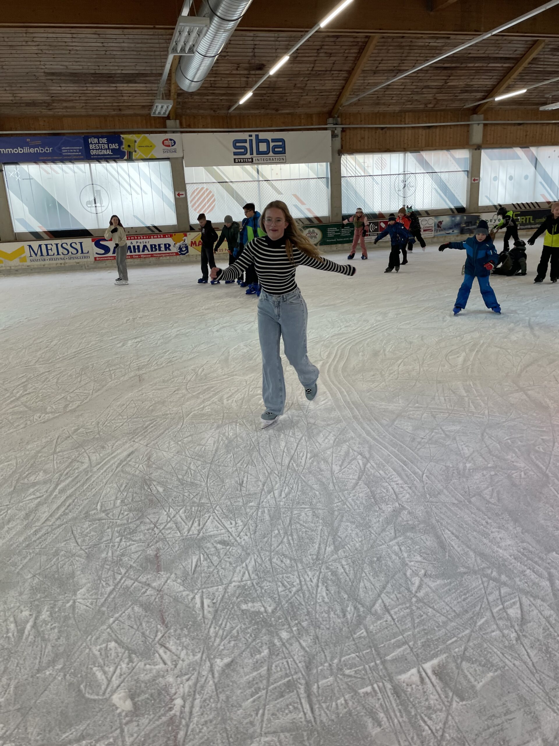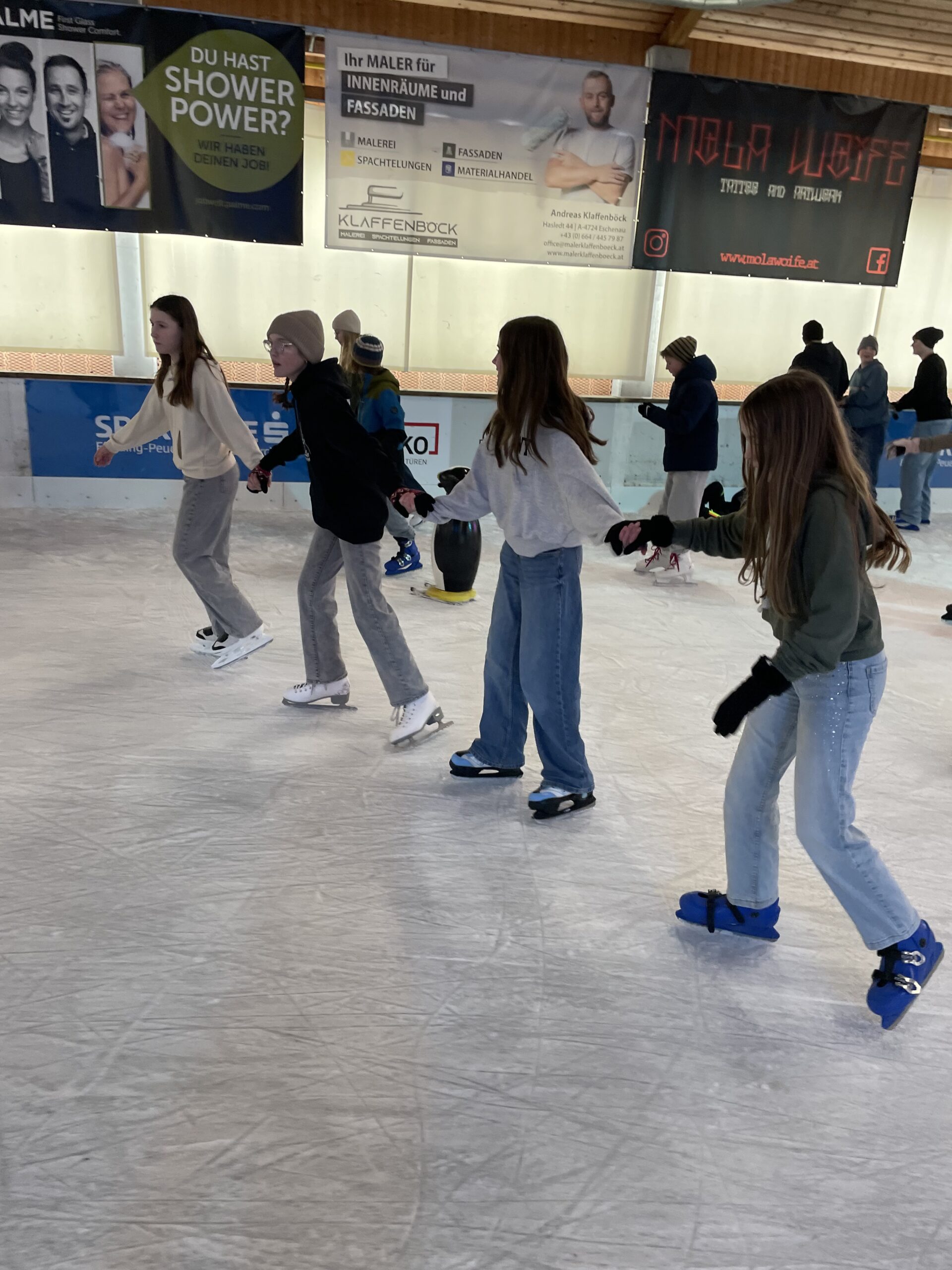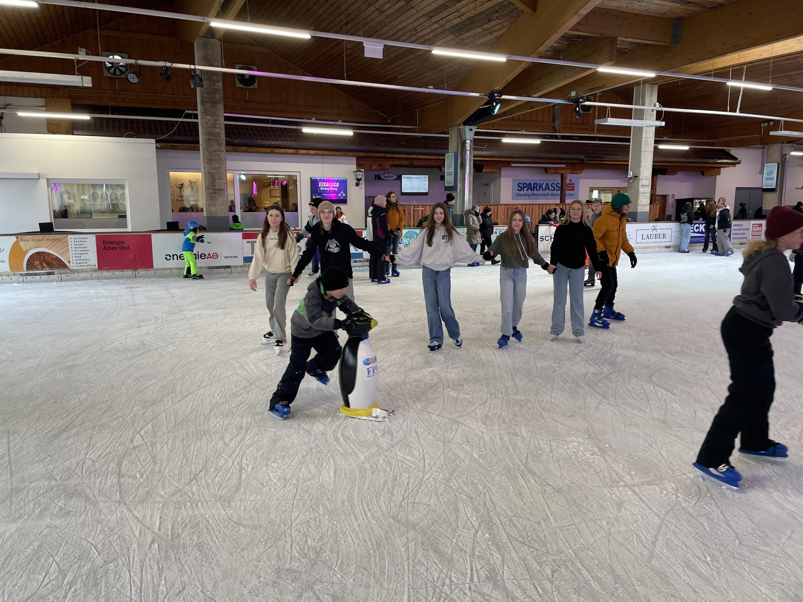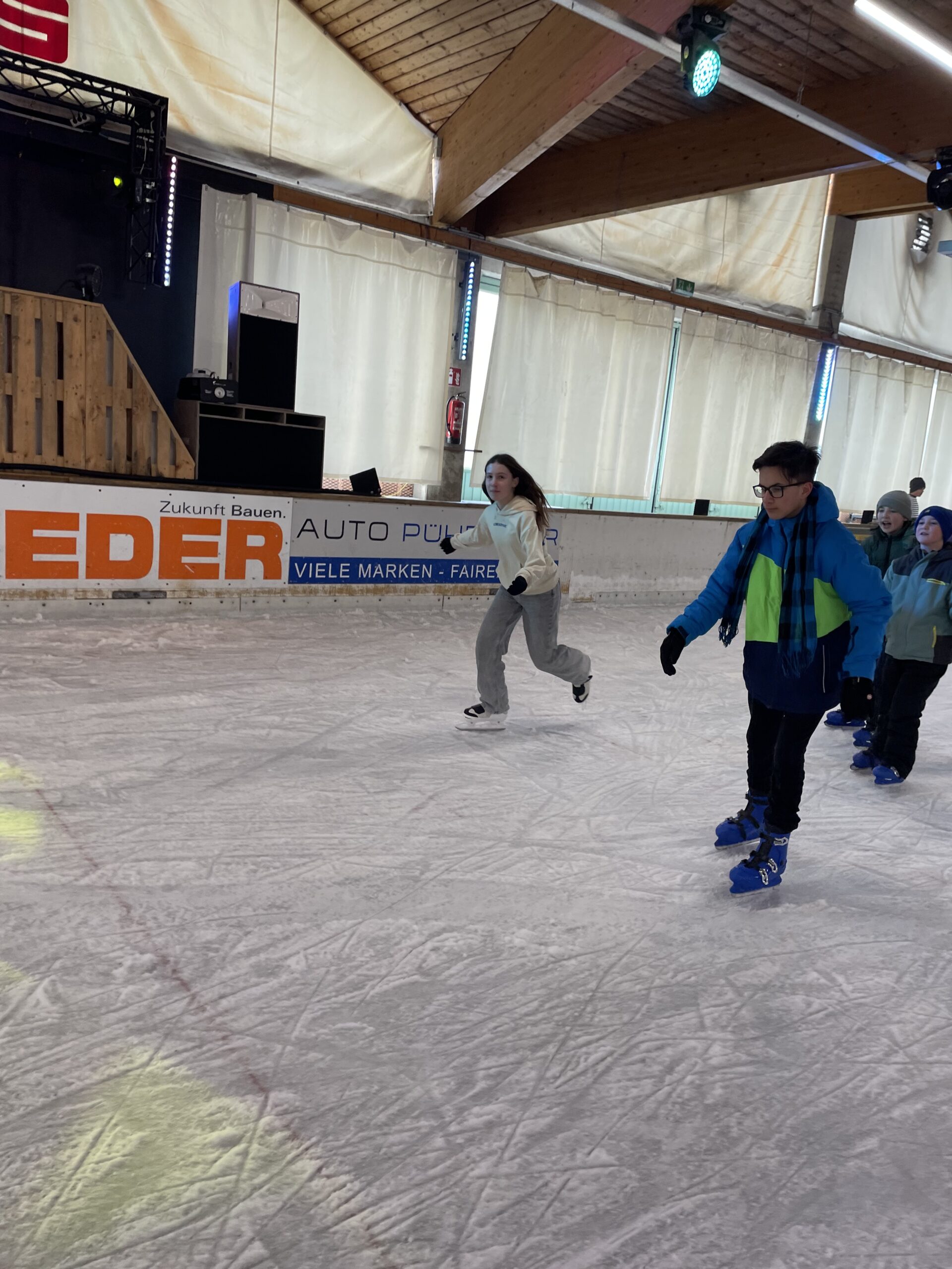 Mit viel Begeisterung und guter Laune drehten die Schülerinnen und Schüler ihre Runden auf dem Eis. Ob erste vorsichtige Schritte, schnelle Fahrten oder kleine Kunststücke – alle waren mit vollem Einsatz dabei. Dabei standen nicht nur Bewegung und Spaß im Mittelpunkt, sondern auch das Miteinander.
