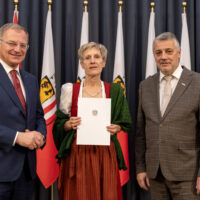 Am 12.12.2025 fand im Landhaus die Lehrertitelverleihung statt. Elisabeth Grossfurtner und Brigitte Reitinger erhielten dabei den Berufstitel Schulrätin, überreicht von Landeshauptmann Mag. Thomas Stelzer und Bildungsdirektor Mag. Dr. Alfred Klampfer. Anwesend waren auch Hr. Bürgermeister Klaus Paminger und mit der Leitung der MS Beauftragte Fr. Brigitte Hackner.